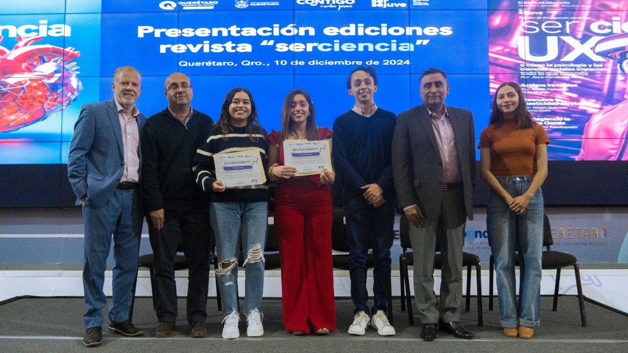 Durante la ceremonia de presentación de la Revista, se entregó un reconocimiento especial a Estefanía Arellano Ordoñez —egresada de Agroindustrial, campus Amazcala— quien ha sido autora de otros trabajos en ediciones anteriores. Su constante contribución ha sido fundamental para promover la ciencia entre jóvenes queretanos, reiterando compromiso con la investigación y su esfuerzo por hacer accesible el conocimiento científico.
