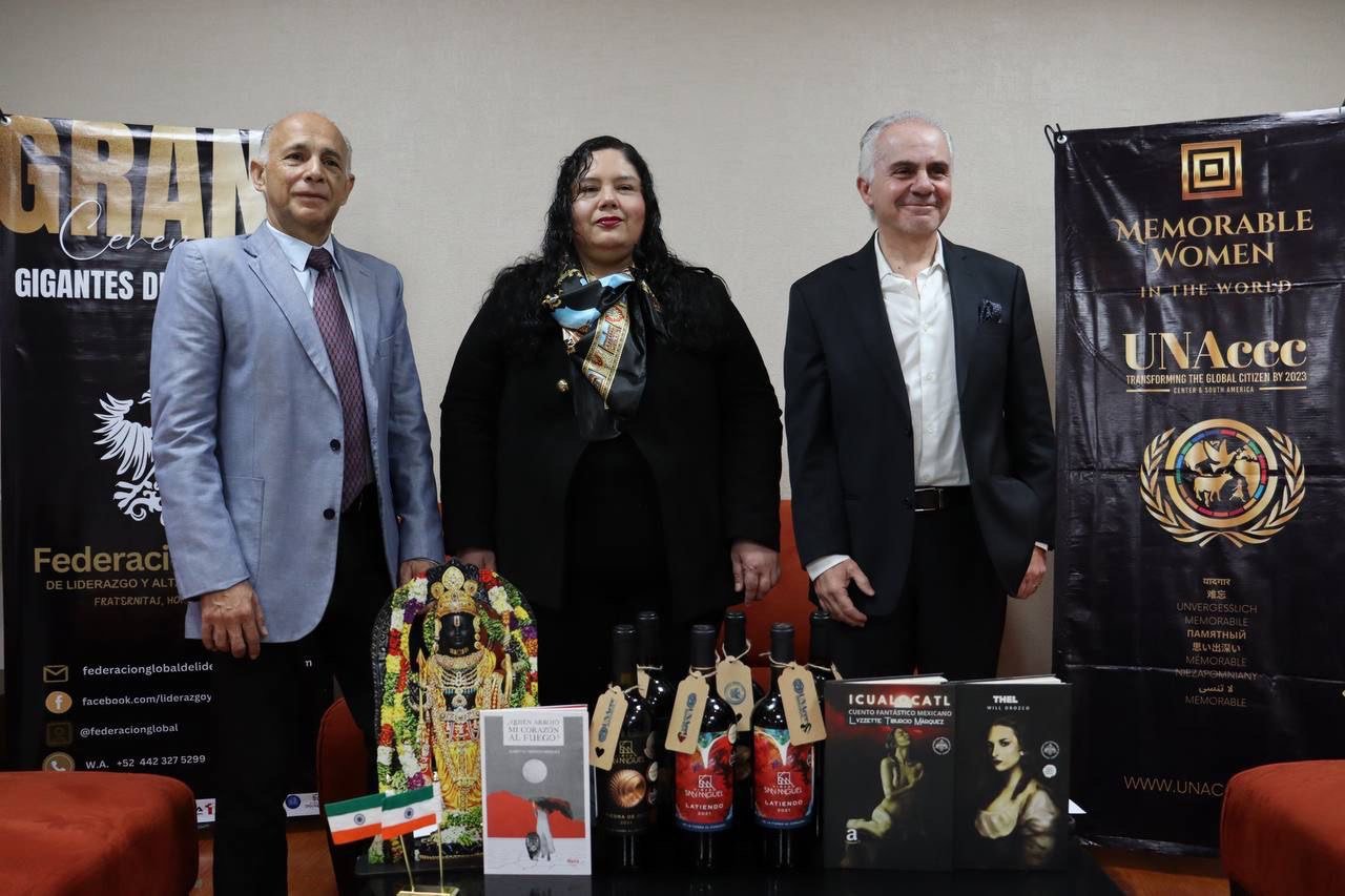 En conferencia de prensa, Jeanette Tiburcio Marquéz, Presidenta Ejecutiva de la Federación Global de Liderazgo y Alta Inteligencia, y Alfredo Gobera Farro, Jefe de la Comisión de Turismo de Salud del Clúster Queretano Médico y de Salud A.C., informaron que, con el apoyo de la Embajada de México ante la Santa Sede, la Pontificia Universidad de Antonianum, la Academia Mundial de Literatura, Historia, Arte y Cultura, así como Telered y la UNAccc Latam, el Movimiento Acción de Paz, y el Corporativo Inteligencia Educa, se celebró la entrega de sus premios mundiales, que reunió a más de 300 líderes de 45 países.