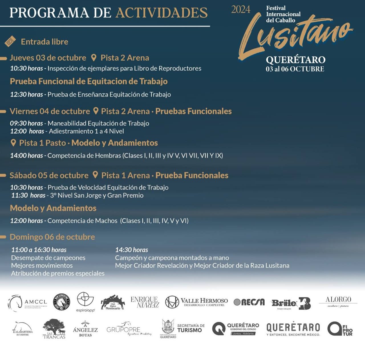 En su oportunidad, el presidente del Comité Organizador de la Asociación Mexicana de Criadores de Caballo Lusitano, José Luis Ángeles, destacó la importancia de este festival, que año con año consolida a México como un referente en el ámbito ecuestre internacional.