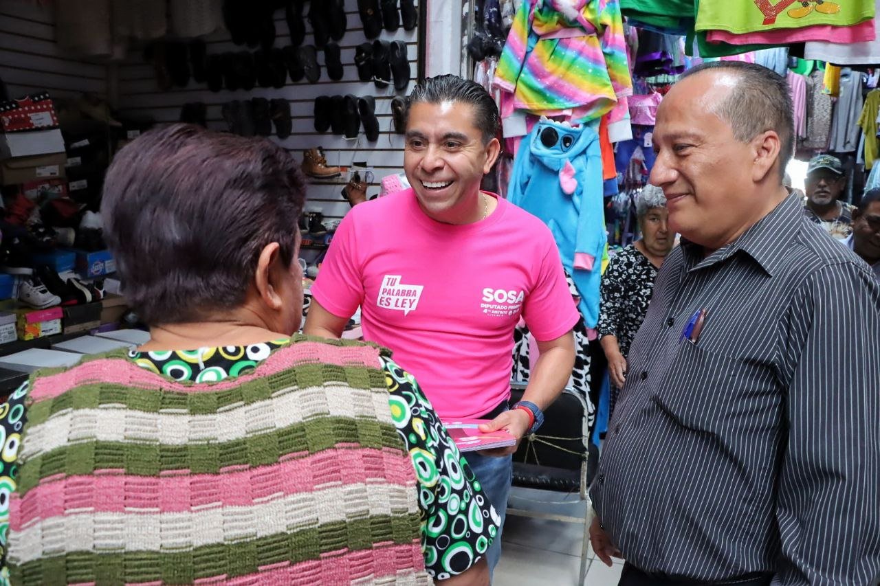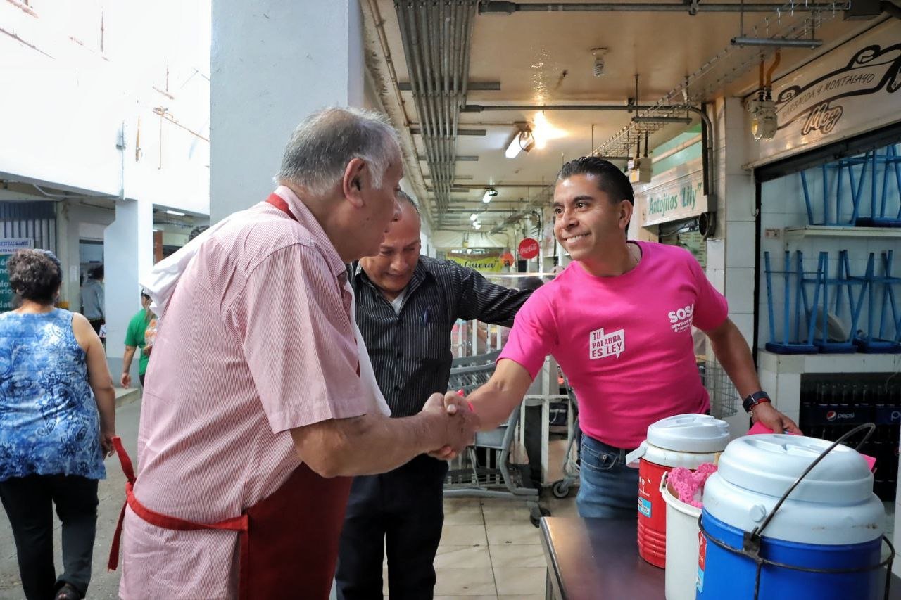 Sostuvo reunión con Rafael Granados, dirigente de la Federación de Uniones de Comerciantes Queretanos en Pequeño. Conversó con locatarios y tianguistas en su recorrido.