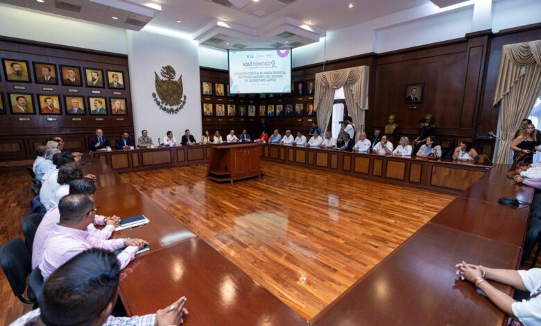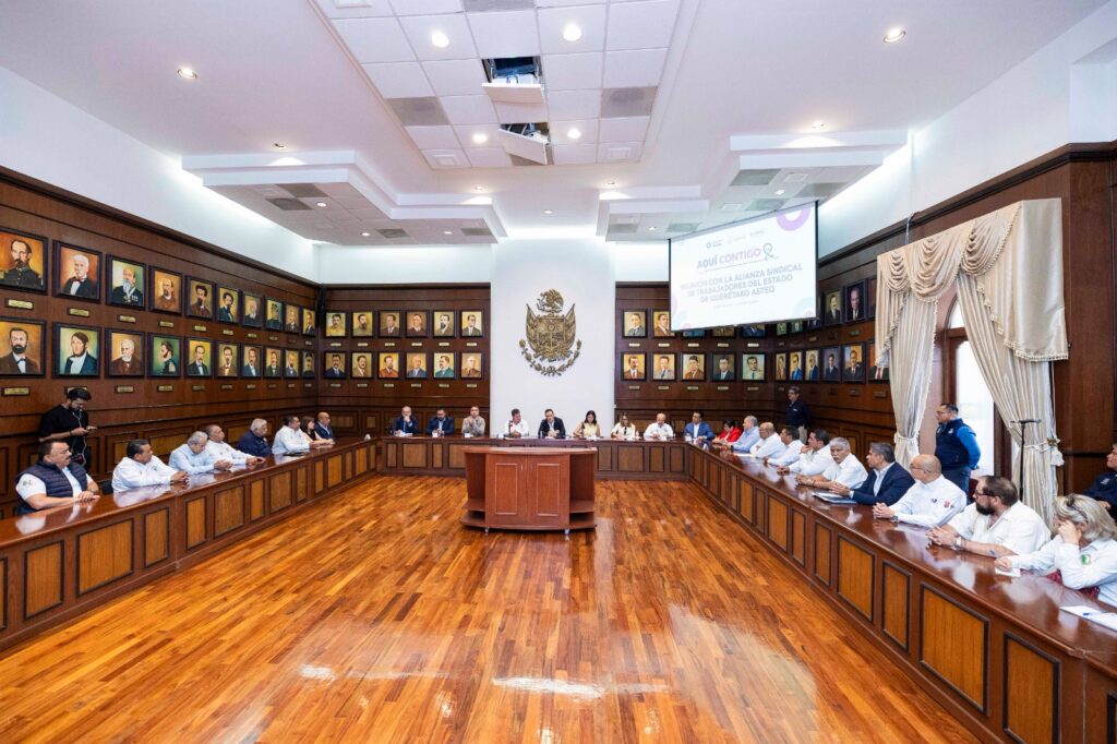El gobernador Mauricio Kuri González se reunió con representantes de la Alianza Sindical de Trabajadores del Estado de Querétaro (ASTEQ) en Querétaro, acompañado por integrantes de su gabinete, con el objetivo de establecer una mesa de trabajo que permita dar seguimiento a las inquietudes de las organizaciones sindicales, en el marco de actividades relacionadas con el Día del Trabajo.