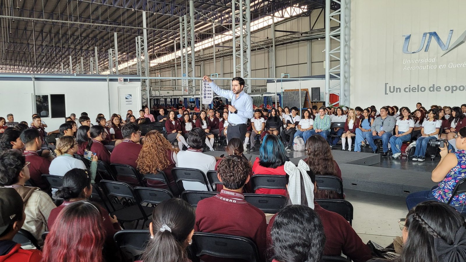 Este Evento Estatal de Jefes de Grupo COBAQ se realizó en las instalaciones de la Universidad Aeronáutica de Querétaro, donde además de las pláticas y dinámicas para fomentar el sentido de liderazgo de este grupo de estudiantes, también se les informó de la oferta académica en una de las industrias de mayor crecimiento en Querétaro de los últimos años.