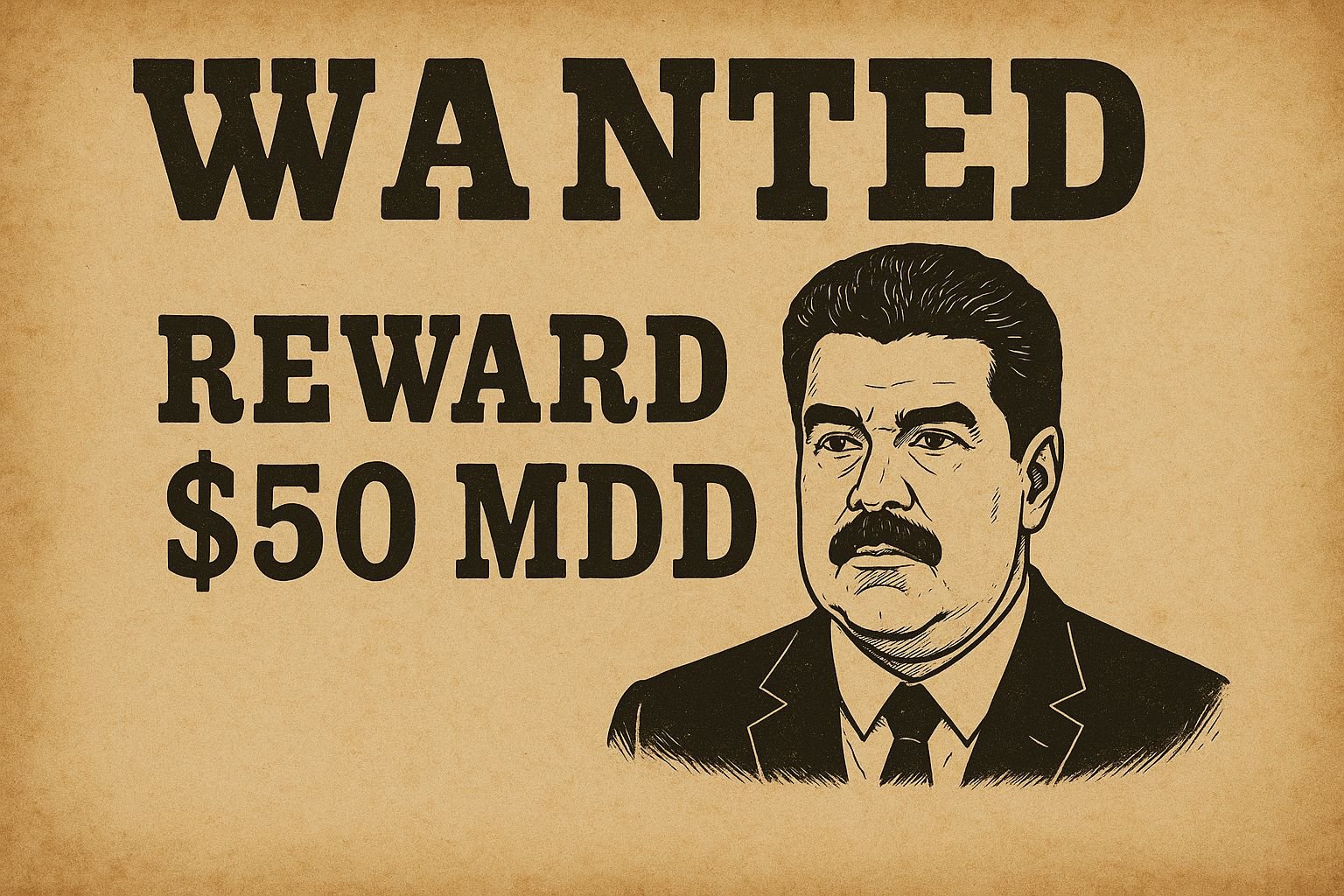 El gobierno de Estados Unidos aumentó la recompensa por información que conduzca a la captura del presidente venezolano Nicolás Maduro, elevándola de 25 a 50 millones de dólares.