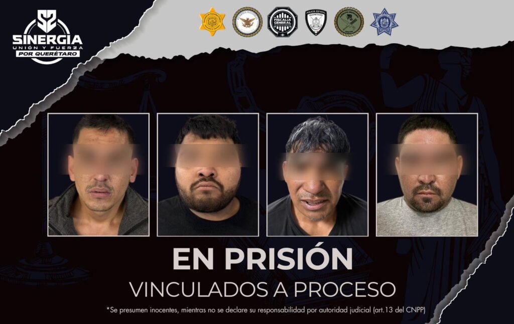 La Fiscalía General del Estado de Querétaro obtuvo la vinculación a proceso de cuatro hombres por el delito de homicidio calificado, tras hechos ocurridos en la comunidad de La Lira, en el municipio de Pedro Escobedo.