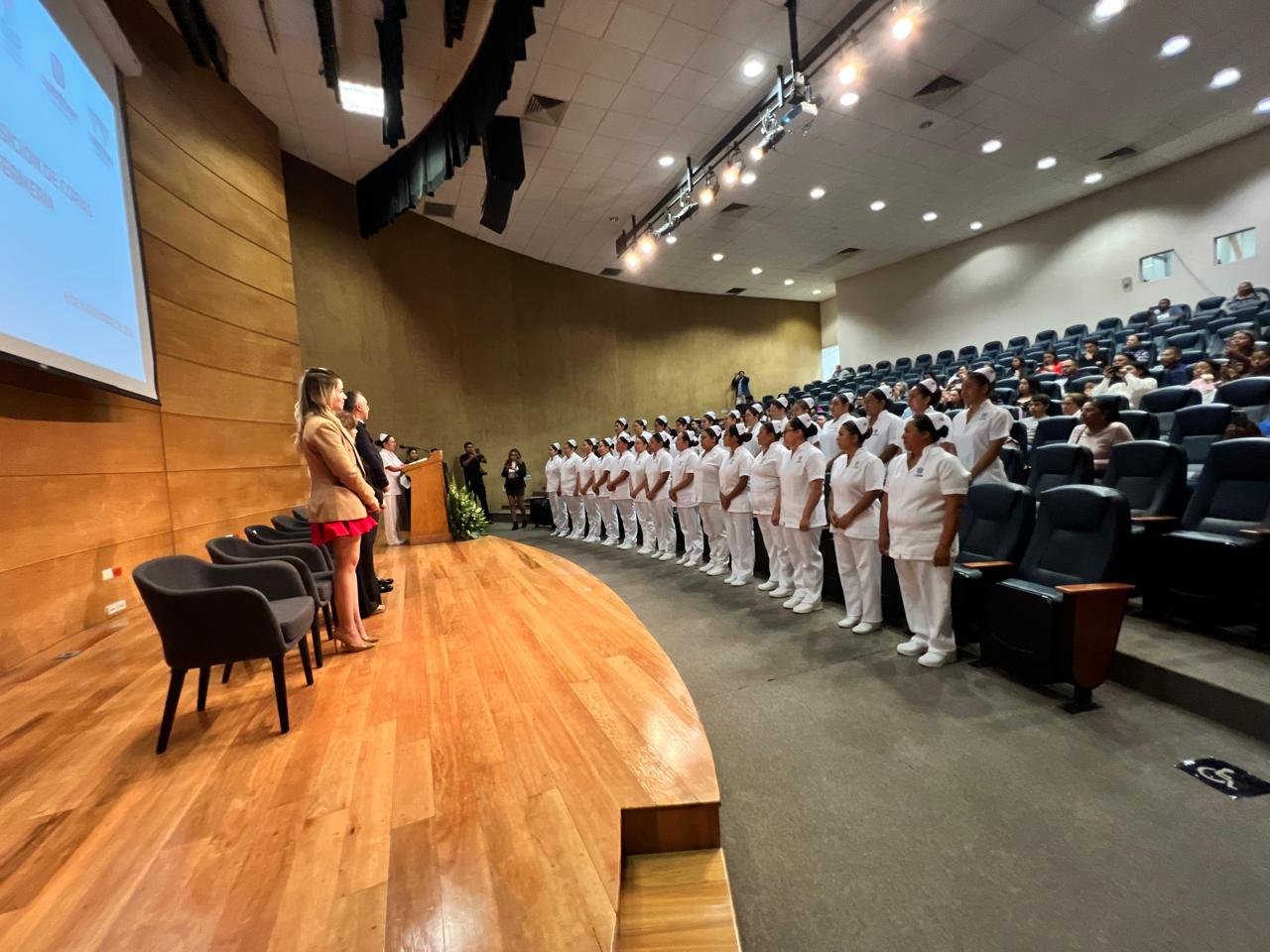 La secretaria de la Mujer, Vanesa Garfias Rojas, destacó la importancia de empoderar a las mujeres y fomentar su capacitación para fortalecer el bienestar de las familias queretanas; señaló que este acto representa un símbolo de la vocación de servicio y el compromiso de las profesionales de la salud y marca el inicio de una nueva etapa para estas alumnas que ahora están un paso más cerca de contribuir a la sociedad desde una de las profesiones más humanas y necesarias.