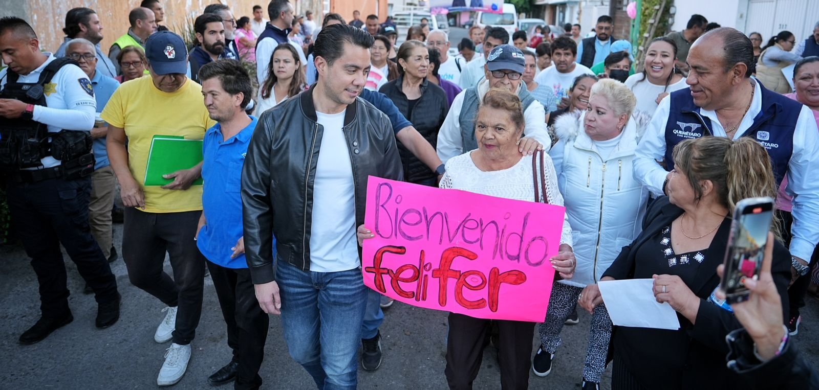 El presidente municipal de Querétaro, Felifer Macías, recorrió la colonia El Rocío, en la Delegación Félix Osores, para escuchar de manera directa las necesidades de las y los vecinos y consolidar su compromiso con un gobierno cercano y enfocado en mejorar la calidad de vida de las familias queretanas.