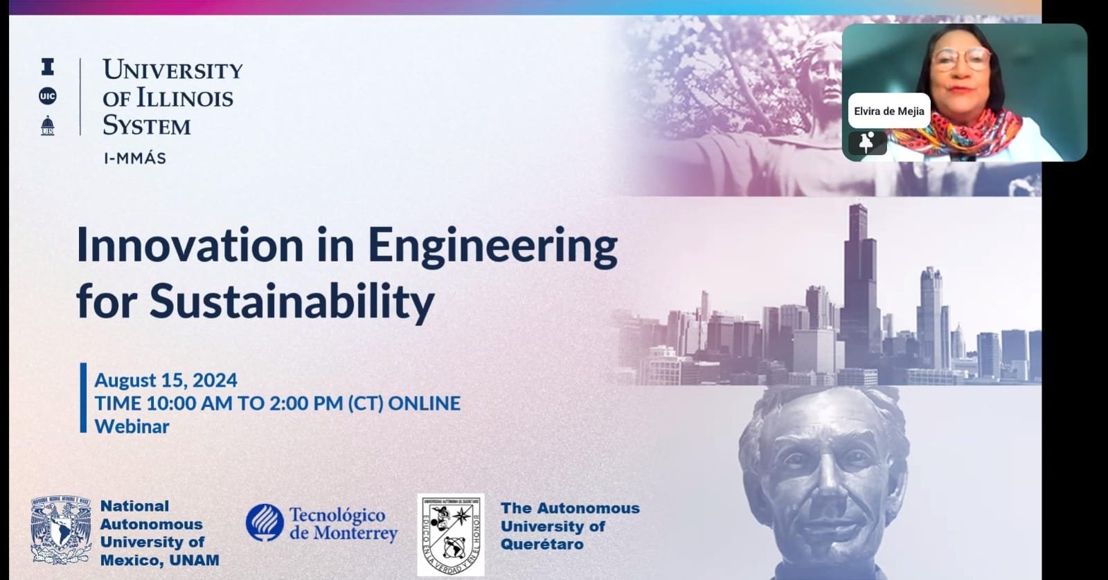 A través del titular de la Dirección de Innovación, Dr. Alberto de Jesús Pastrana Palma, la Universidad Autónoma de Querétaro (UAQ) participó en el simposio virtual “Innovation in Engineering for Sustainability”, organizado por el University of Illinois System a través del programa Mexican and Mexican American Students Initiative (I-MMÁS).