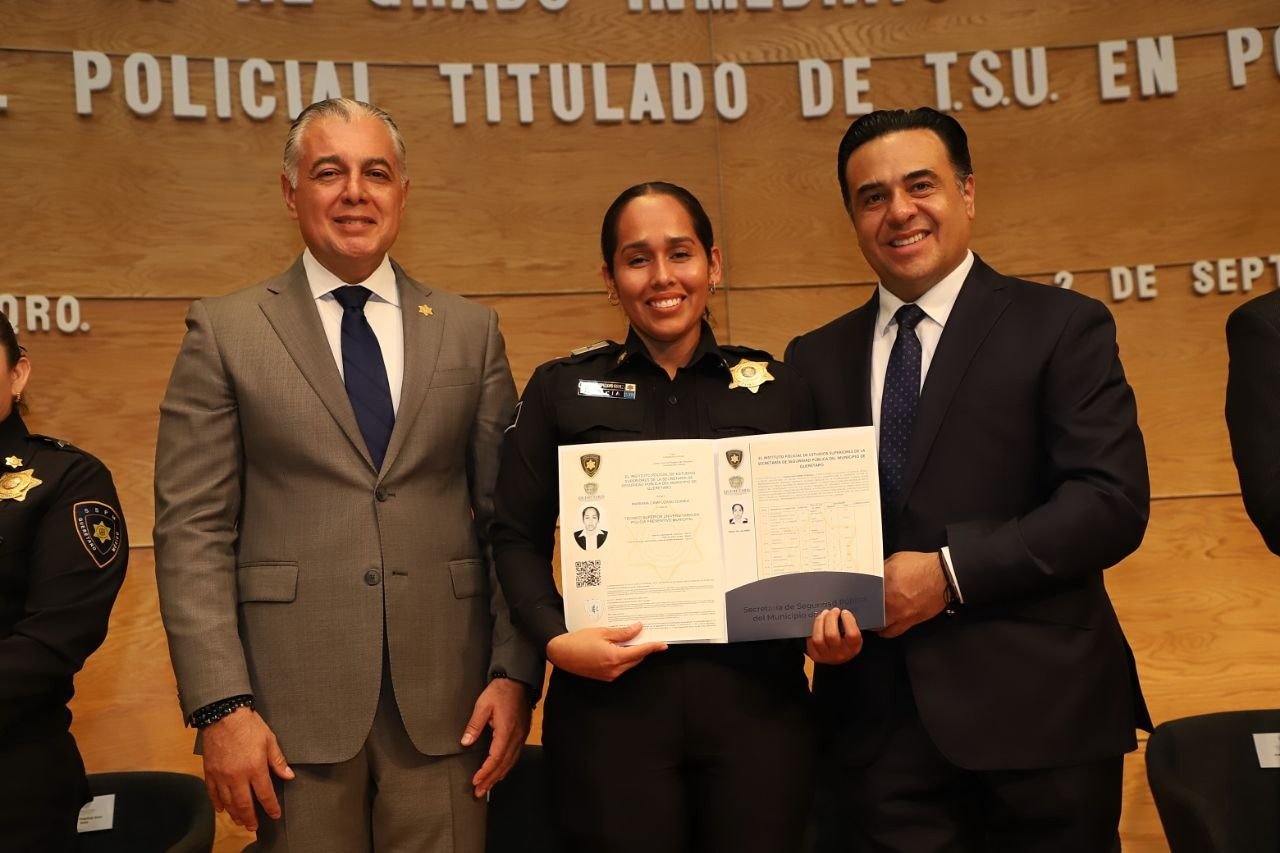 “La titulación y los ascensos que hoy se otorgan son un reflejo de su disciplina y su deseo constante de superación. La sociedad en la que vivimos requiere cada vez de más servidores públicos que además de ser valientes y decididos estén preparados y capacitados para enfrentar los retos del presente y del futuro. Ustedes han decidido no quedarse atrás y han optado por crecer, por aprender más y por poner ese conocimiento al servicio de la ciudadanía”, finalizó.