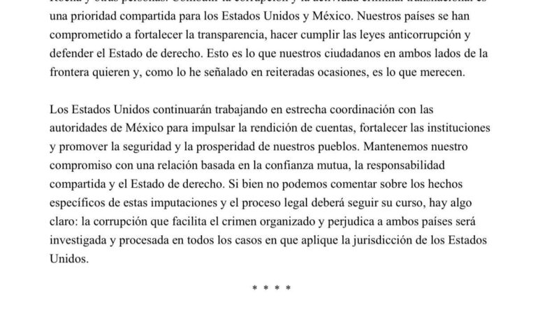 El caso involucra al menos a diez personas entre funcionarios y mandos de seguridad, y se encuentra radicado en una corte federal de Nueva York. Forma parte de una estrategia de Estados Unidos para ampliar el alcance de sus investigaciones contra el narcotráfico, enfocándose no solo en líderes criminales, sino también en actores políticos presuntamente vinculados con estas redes. De ser encontrados culpables, los implicados podrían enfrentar penas de hasta cadena perpetua conforme a la legislación estadounidense.