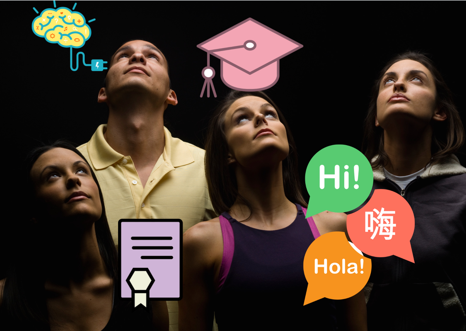 Sea inglés, francés, alemán, chino, japonés, italiano o el que quieras, a parte del español, poquitos son bilingües, a penas el 17% elige el inglés y el 7% otro idioma.