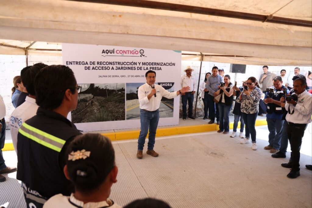 El secretario de Desarrollo Social, Luis Nava, encabezó la entrega de la obra de reconstrucción y rehabilitación del acceso a la colonia Jardines de la Presa, en el municipio de Jalpan de Serra, con una inversión de 4.5 millones de pesos, realizada con el objetivo de mejorar las condiciones de movilidad y calidad de vida de más de 12 mil habitantes; los trabajos incluyeron concreto hidráulico, drenaje pluvial, banquetas y un muro de contención.