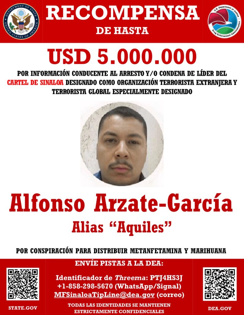El gobierno de Estados Unidos anunció una recompensa de hasta 5 millones de dólares por información que conduzca a la captura y/o condena de los hermanos René y Alfonso Arzate García, alias “La Rana” y “El Aquiles”, señalados como presuntos líderes del Cártel de Sinaloa en la zona de Tijuana, Baja California.