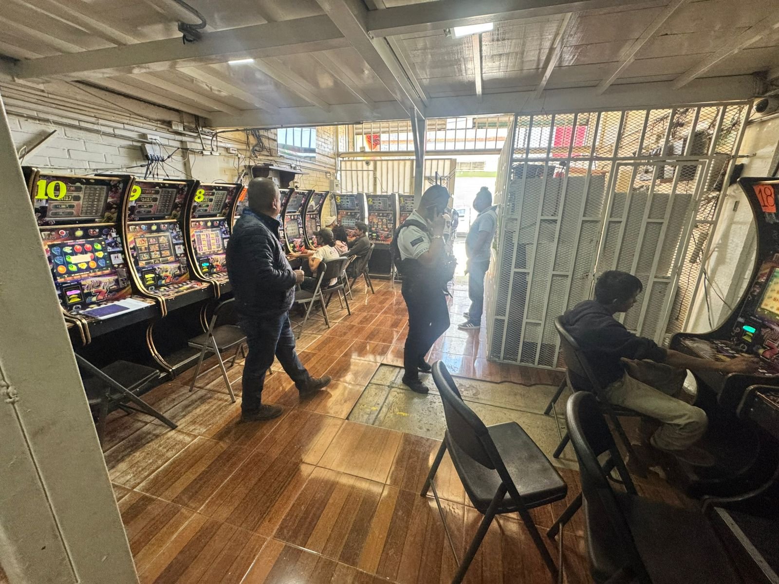 Durante la revisión física del domicilio, se pudo percatar la existencia de 17 máquinas con características similares a “tragamonedas” sin contar con el permiso correspondiente establecida por la Ley de Juegos y Sorteos en la cual refiere que están prohibidas las máquinas traga monedas, por lo que procedió al aseguramiento de dos máquinas y a la suspensión de actividades.