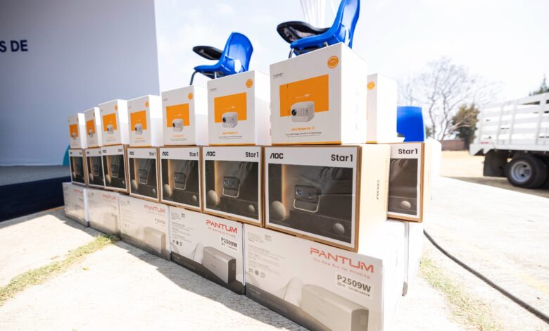 El equipamiento entregado incluye mobiliario, computadoras portátiles, pantallas y proyectores, los cuales serán destinados a mejorar los espacios de aprendizaje y las actividades escolares.