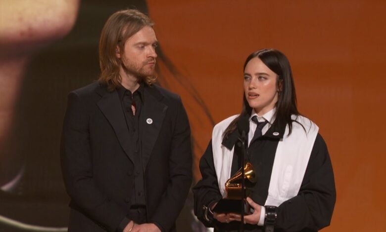 Billie Eilish, al aceptar el premio por Canción del Año, incorporó un mensaje explícito sobre inmigración en su alocución, utilizando la frase “no one is illegal on stolen land” y continuando con una declaración de rechazo a ICE, parte de la cual fue transmitida con lenguaje fuerte.