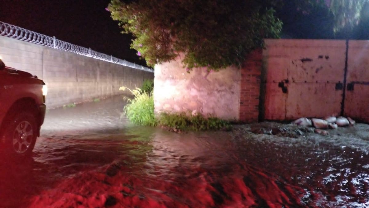 El desbordamiento del dren pluvial en Hacienda Montenegro bloqueó el flujo del agua y generó la acumulación en las vialidades de la zona, incluso se registró el ingreso de lodo y agua en al menos tres viviendas.