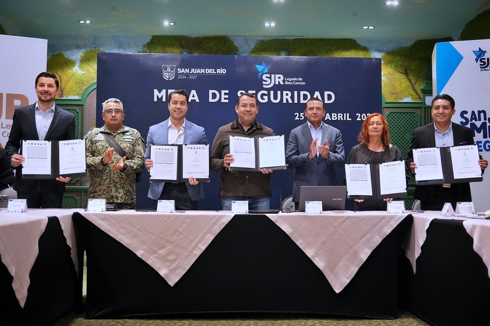 En la firma del convenio también estuvieron presentes los presidentes municipales de San Juan del Río, Roberto Cabrera; de Tequisquiapan, Héctor Iván Magaña; y de Ezequiel Montes, Iván Reséndiz. Acompañaron al evento el capitán Josué Moreno Salas, secretario técnico de la Mesa de Seguridad en la región San Juan del Río, y el teniente coronel Francisco Javier Robles Márquez, comandante del 7° Regimiento Mecanizado.
