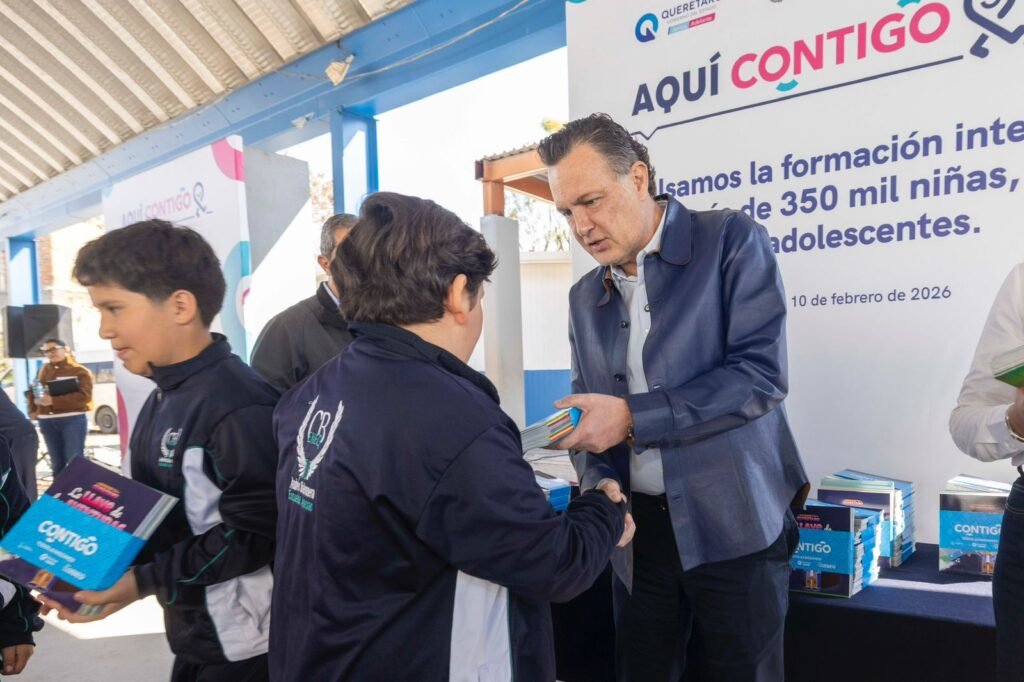 El Gobierno del Estado de Querétaro inició la distribución estatal de la segunda edición del paquete de libros “Defensores de Querétaro”, dirigido a alumnas y alumnos de educación primaria, durante un acto encabezado por el gobernador Mauricio Kuri González en la primaria Anexa a la Normal del Estado, con una entrega simultánea en escuelas de los 18 municipios, de cara al ciclo escolar 2025-2026.