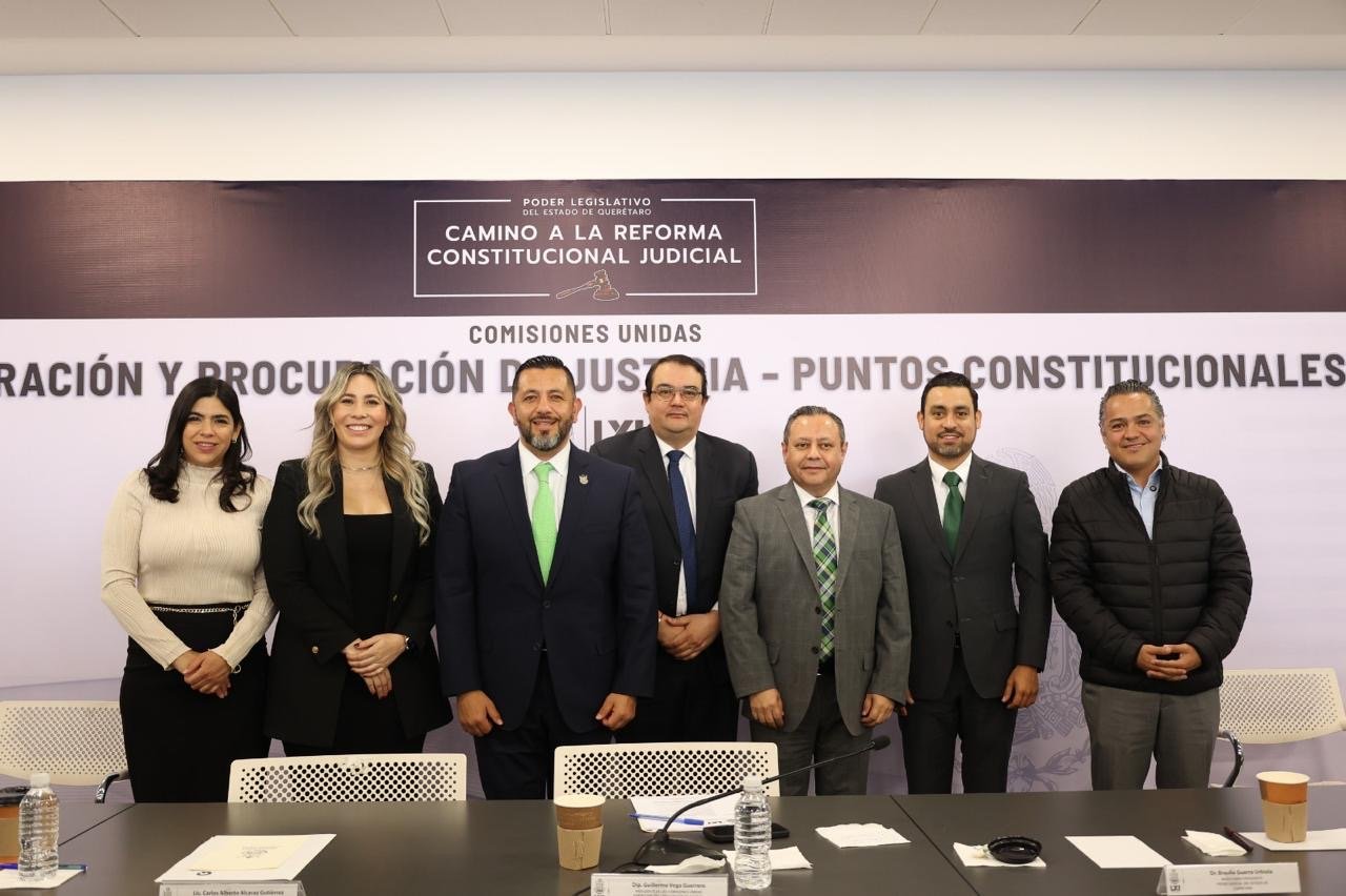 Las Comisiones Unidas de Administración y Procuración de Justicia y Puntos Constitucionales en la LXI Legislatura del Estado, presidida por el diputado Guillermo Vega Guerrero, e integrada por los legisladores Homero Barrero Mcdonald, secretario, Juliana Rosario Hernández Quintanar y Enrique Antonio Correa Sada, iniciaron trabajos con motivo de la reforma judicial en el estado; sesión en la que se contó con la presencia del secretario de Gobierno del Poder Ejecutivo del estado de Querétaro, Carlos Alberto Alcaraz Gutiérrez; del magistrado presidente del Poder Judicial, Braulio, Guerra Urbiola; de la presidenta de la Mesa Directiva de la LXI Legislatura, diputada Laura Andrea Tovar Saavedra; así como de diputadas y diputados del Poder Legislativo del estado; de los magistrados integrantes de la Sala Constitucional del Tribunal Superior de Justicia del estado; y de los integrantes del Consejo de la Judicatura; además de alumnos y ciudadanos interesados.