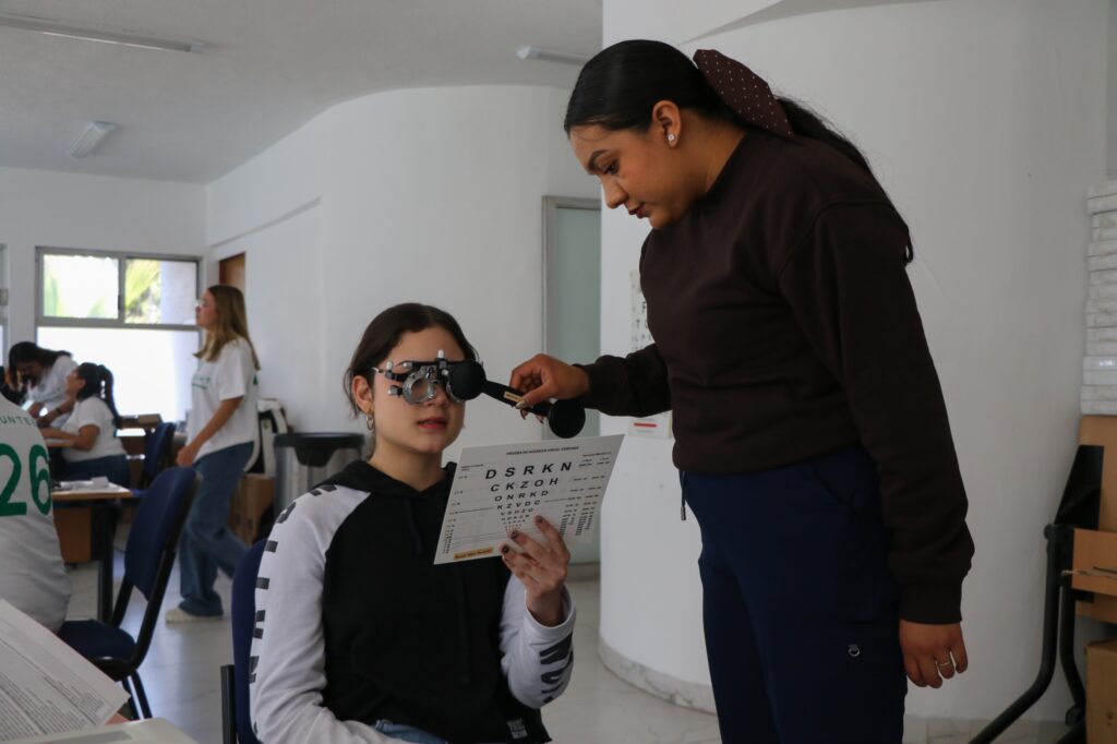 Durante la jornada, estudiantes, docentes y especialistas voluntarios de la Licenciatura en Optometría de la Facultad de Medicina de la Universidad Autónoma de Querétaro realizaron revisiones visuales a los asistentes, quienes acudieron para recibir atención preventiva y correctiva.