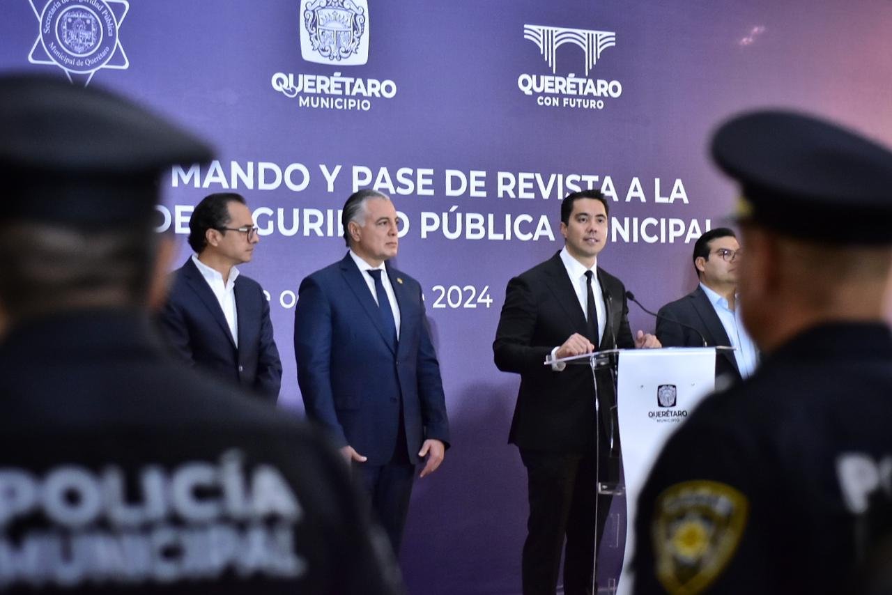El presidente municipal de Querétaro, Felifer Macías encabezó el acto de cambio de mando en la Secretaría de Seguridad Pública Municipal, donde anunció que será la seguridad pública la gran apuesta de su administración. Por ello, pidió al personal policial trabajar con compromiso y, todos los días, ser el rostro de la confianza y la asistencia.