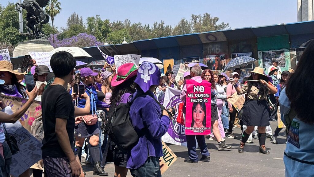 La marcha reúne a colectivas feministas, estudiantes, organizaciones civiles, familiares de víctimas de feminicidio y mujeres que participan de forma independiente para exigir justicia, igualdad y acciones contra la violencia de género en México.