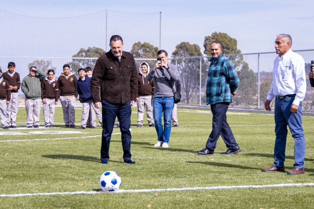 Durante su visita a la Escuela Secundaria Técnica No. 8 “Jesús Romero Flores”, ubicada en la comunidad de El Salto, el mandatario estatal inauguró la rehabilitación y equipamiento de la cancha de futbol 7, obra que representó una inversión de 3.4 millones de pesos y beneficia a cerca de 600 alumnas y alumnos.