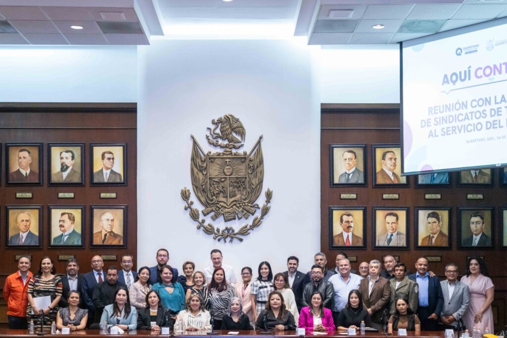 El gobernador de Querétaro, Mauricio Kuri González, se reunió con integrantes de la Federación de Sindicatos de Trabajadores al Servicio del Estado (FSTSE) en Querétaro, con el objetivo de fortalecer la coordinación institucional, mantener el diálogo abierto y atender las necesidades laborales de los trabajadores; el encuentro se realizó en la entidad como parte de las acciones de su administración para mejorar la gestión pública y las condiciones laborales.