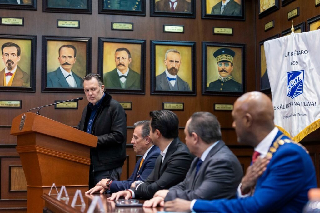 El gobernador de Querétaro, Mauricio Kuri González, tomó protesta al nuevo presidente y Comité Directivo de SKÅL Querétaro, encabezado por Luis Signoret Luna, en una ceremonia realizada en el Palacio de Gobierno. Durante el acto protocolario, el mandatario refrendó el respaldo de su administración al sector turístico y destacó proyectos de conectividad y desarrollo previstos para 2026, con el objetivo de fortalecer la actividad turística en la entidad.