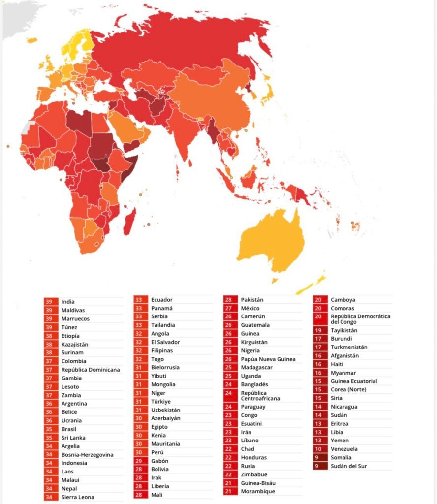A nivel global, el índice muestra que la corrupción sigue siendo un problema extendido: más de dos tercios de los países obtienen menos de 50 puntos, lo que evidencia altos niveles de prácticas irregulares en gran parte del mundo.