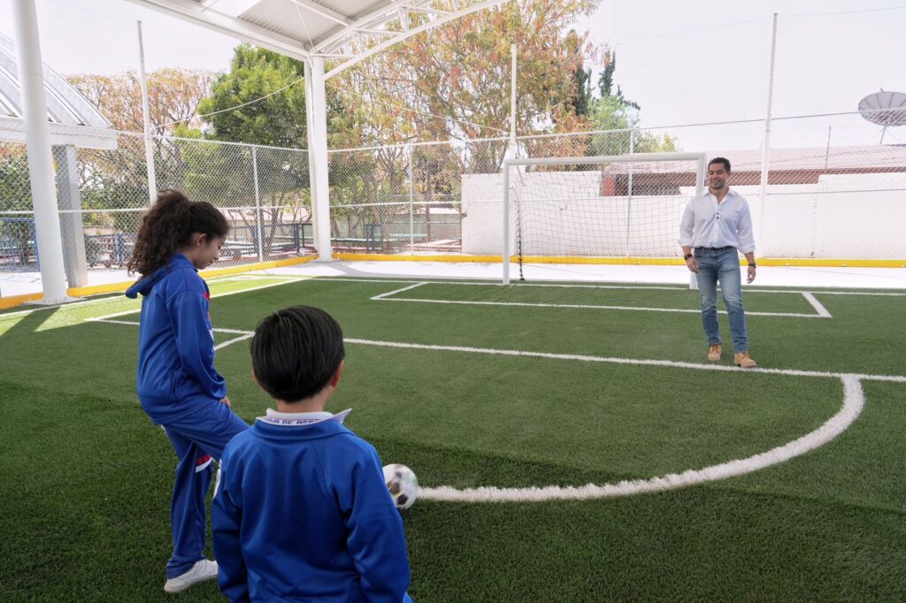 El proyecto contempla la construcción de un arcotecho y una cancha de fútbol con inversión de 5.6 millones de pesos.