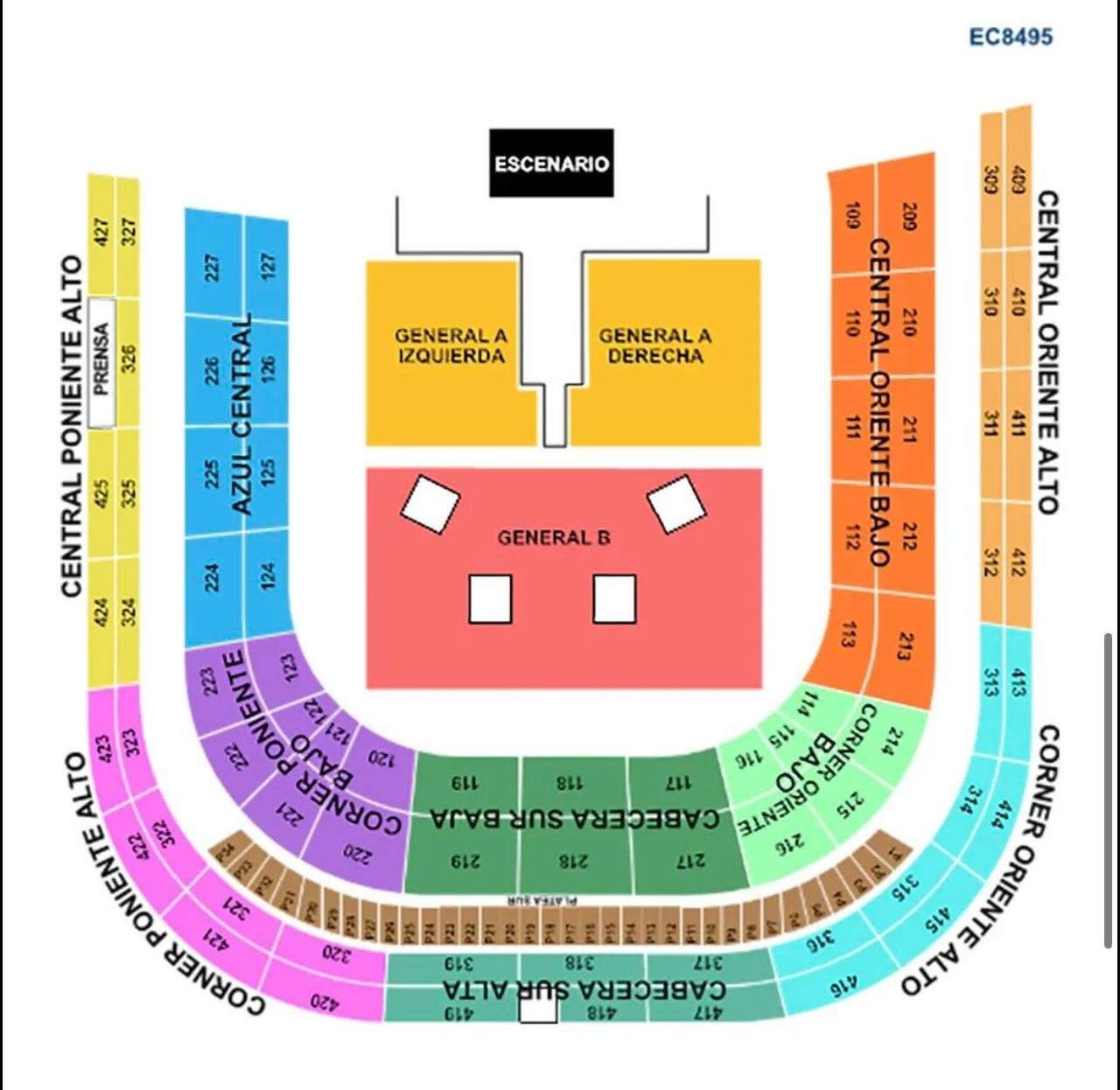 El recinto contará con distintas secciones para garantizar la mejor experiencia a los asistentes. Se recomienda a los fanáticos revisar el mapa de distribución antes de comprar sus boletos para elegir la mejor ubicación posible.