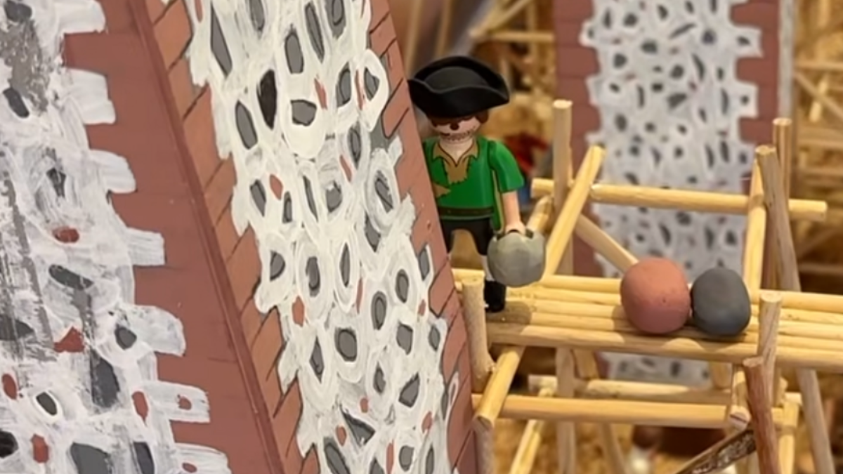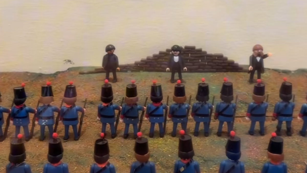 Cada escena está cuidadosamente construida a escala, utilizando más de 350 figuras de Playmobil intervenidas y caracterizadas para representar con detalle a personajes históricos, desde insurgentes hasta emperadores.