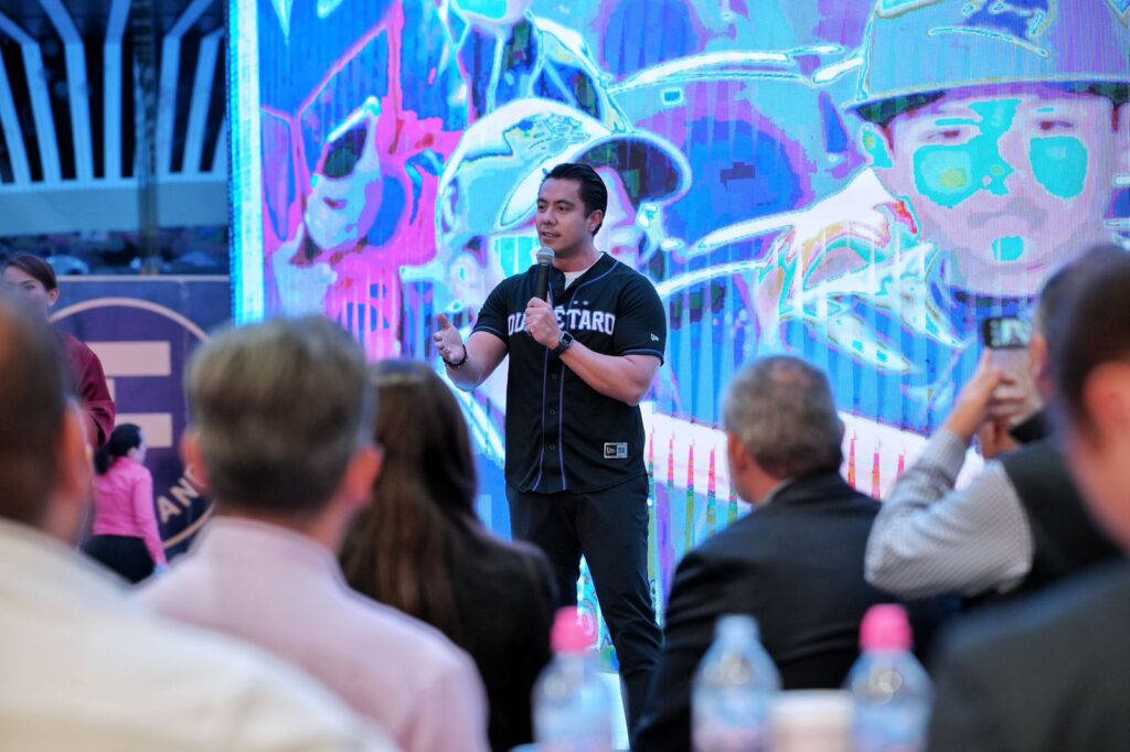 El presidente municipal de Querétaro, Felifer Macías, asistió a la presentación de los nuevos uniformes del equipo de béisbol Conspiradores de Querétaro, realizada en el Centro de Innovación y Tecnología Creativa BLOQUE, donde se dieron a conocer las indumentarias local, de visita y alternativas para la temporada 2026, en un evento que reunió a directivos del club y autoridades estatales y municipales.