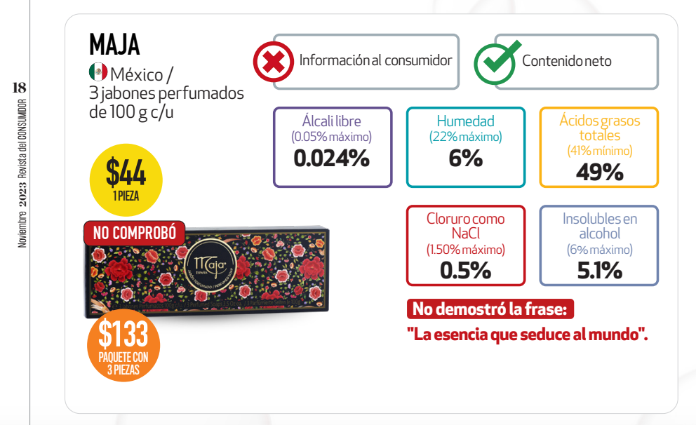 • Desde la revisión de la etiqueta para ver si nos están contando el cuento completo, el chequeo del contenido neto, para que no nos estén dando gato por liebre, el nivel de alcalinidad, humedad, ácidos grasos, cloruros y solubilidad en alcohol.