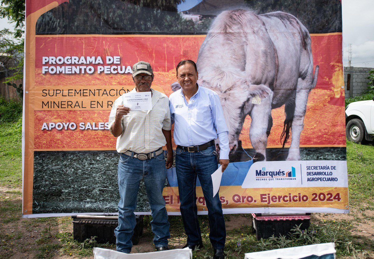 El municipio de El Marqués, a través de la Secretaría de Desarrollo Agropecuario, realizó la entrega de costales de sales minerales a 357 productores de 23 distintas localidades de la demarcación.