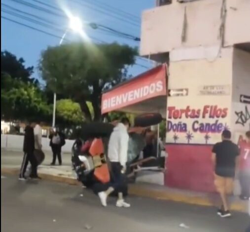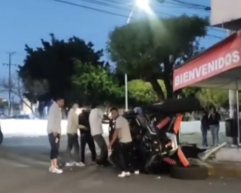Un grupo de jóvenes protagonizó un accidente al volcar un vehículo tipo razer y estrellarse contra un local de comida en la colonia Cerrito Colorado, en Querétaro, la tarde del lunes.