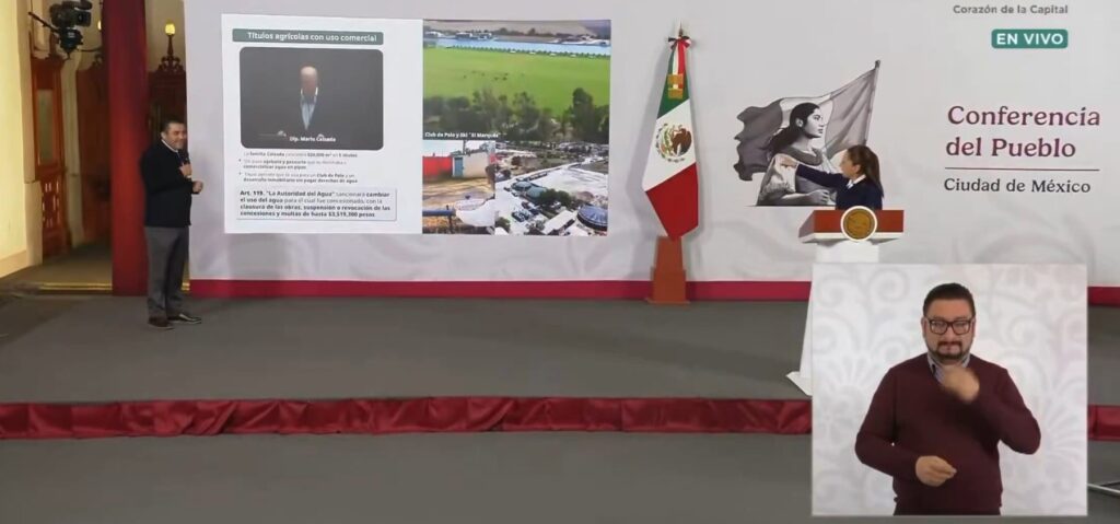 Durante su conferencia matutina de este lunes, la mandataria federal explicó que, además, la familia posee un título agrícola que presuntamente ha sido utilizado para abastecer un club de polo y un desarrollo inmobiliario, lo que representaría un uso distinto al autorizado.