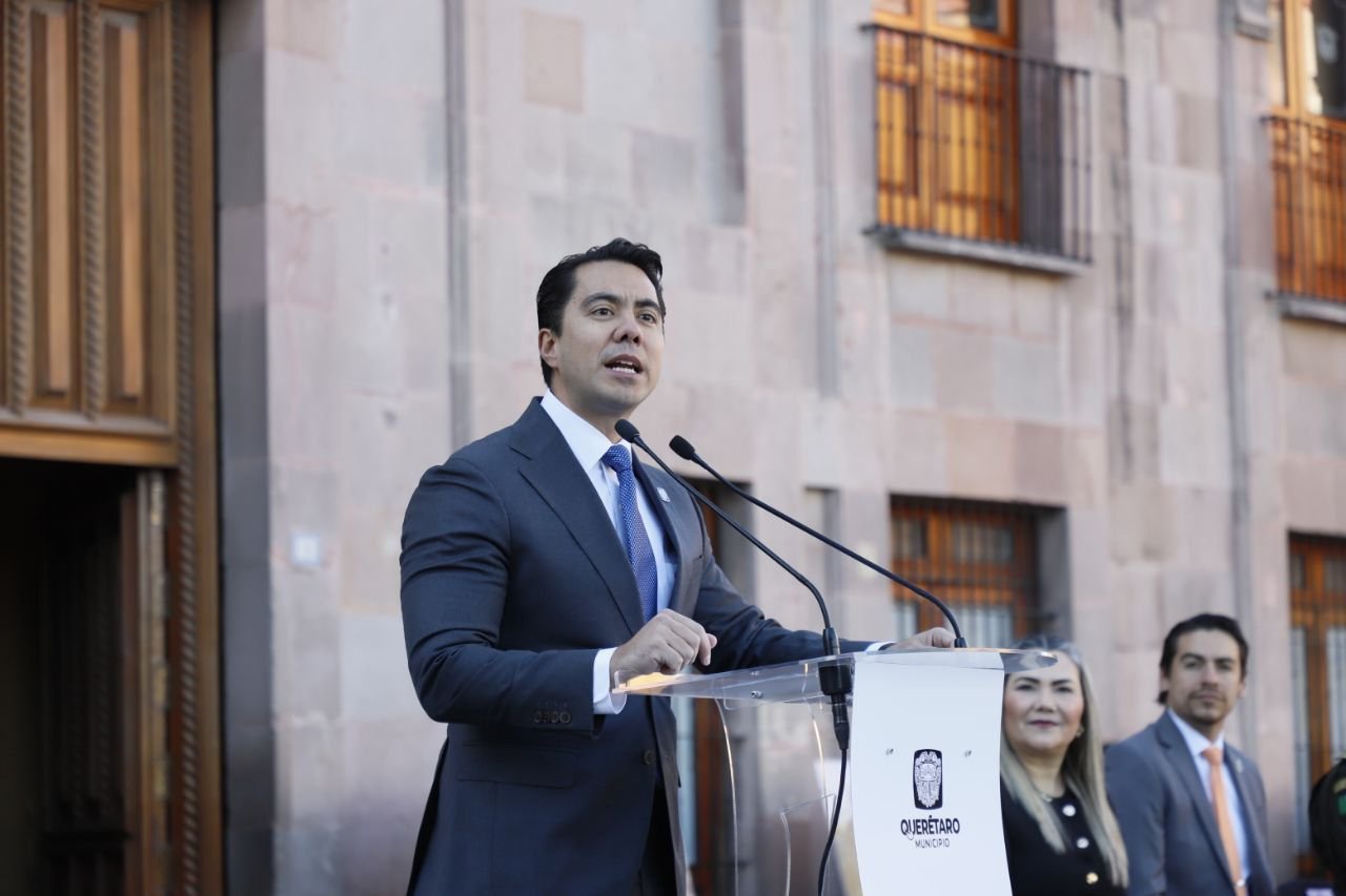 En el Jardín Guerrero, el presidente municipal de Querétaro, Felifer Macías, encabezó la ceremonia de honores a la bandera, en compañía por el General de Brigada Estado Mayor Vinicio Perea Alcaraz, comandante de la Décimo Séptima Zona Militar, y el Comisario Jefe Filiberto Oropeza Fabián, coordinador estatal de la Guardia Nacional en Querétaro, y destacó el compromiso de las instituciones de seguridad para trabajar en equipo y procurar por la tranquilidad de las familias queretanas.