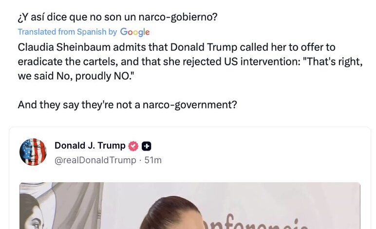 El gobierno de México respondió a las declaraciones del presidente de Estados Unidos, Donald Trump, quien sugirió la existencia de un “narcogobierno” en el país.
