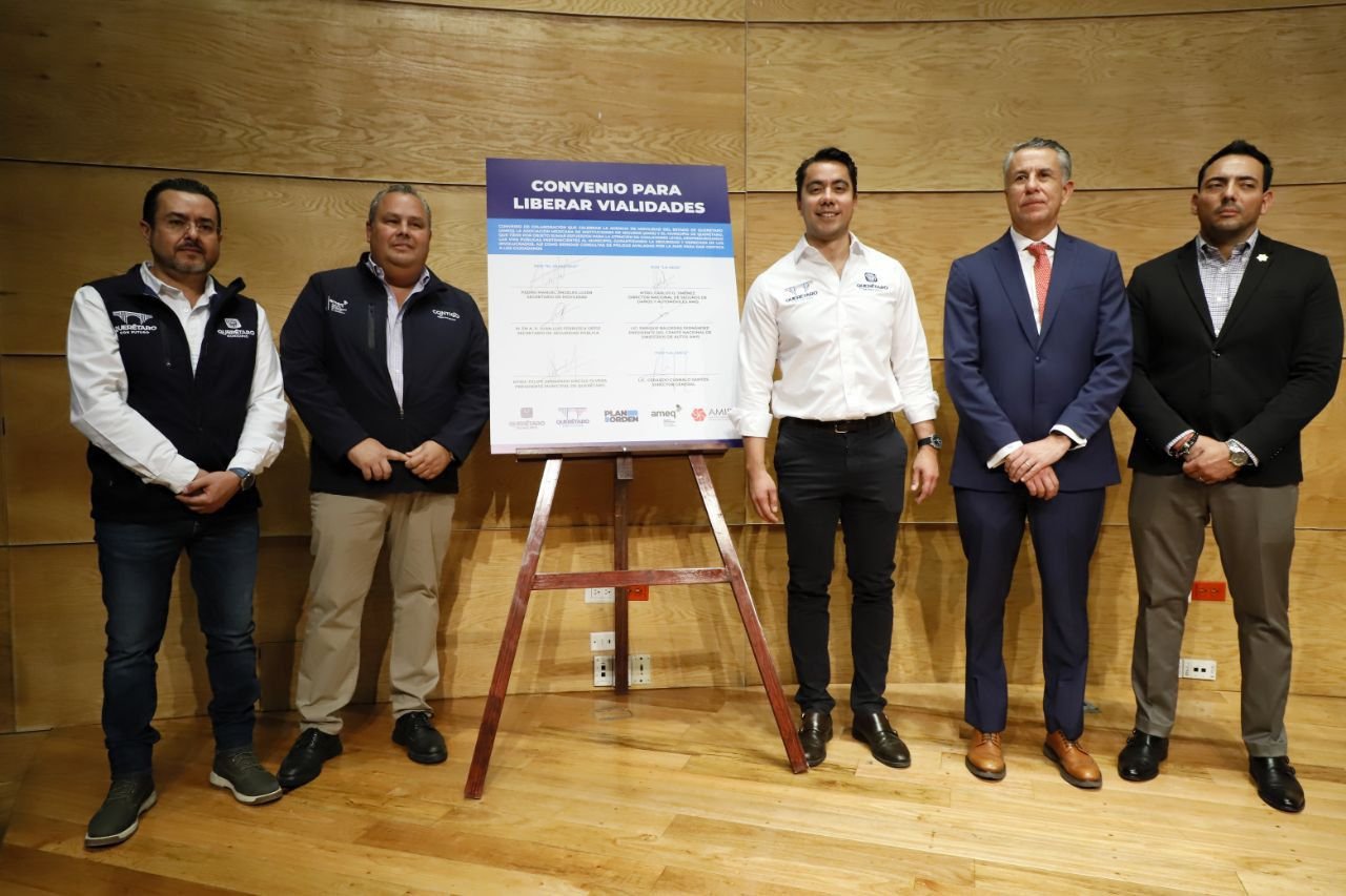 El presidente municipal, Felifer Macías, firmó un convenio entre el Municipio de Querétaro, la Agencia de Movilidad del Estado (AMEQ) y la Asociación Mexicana de Instituciones de Seguros (AMIS), con el propósito de implementar el programa “Si Choco, Me Muevo”, iniciativa que busca agilizar la liberación de las vialidades en casos de siniestros viales por alcance sin lesionados, de forma segura y con el respaldo necesario para garantizar los derechos de las personas involucradas.