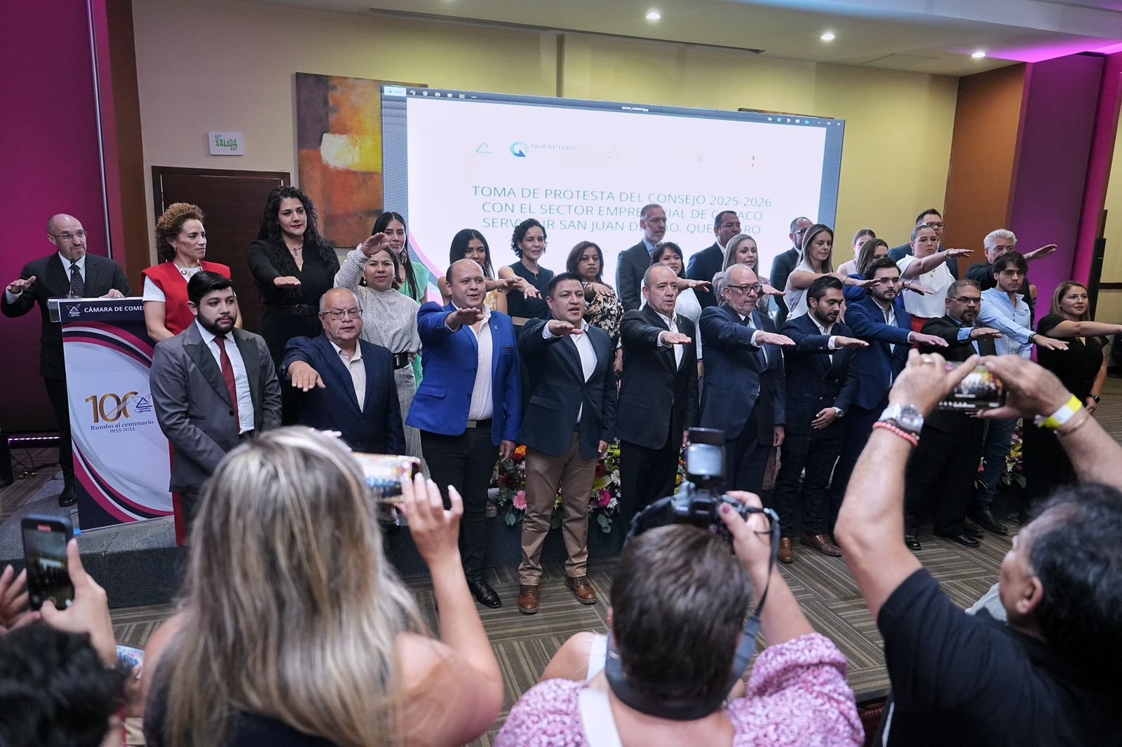 A la toma de protesta también asistió el secretario de Desarrollo Sustentable, Marco Antonio Del Prete Tercero; el presidente municipal de San Juan del Río, Roberto Cabrera Valencia; la secretaria del Trabajo, Liliana San Martín Castillo; el presidente de la Confederación de las Cámaras Nacionales de Comercios, Servicios y Turismo, Octavio de la Torre de Stéffano; entre otros integrantes de la confederación.