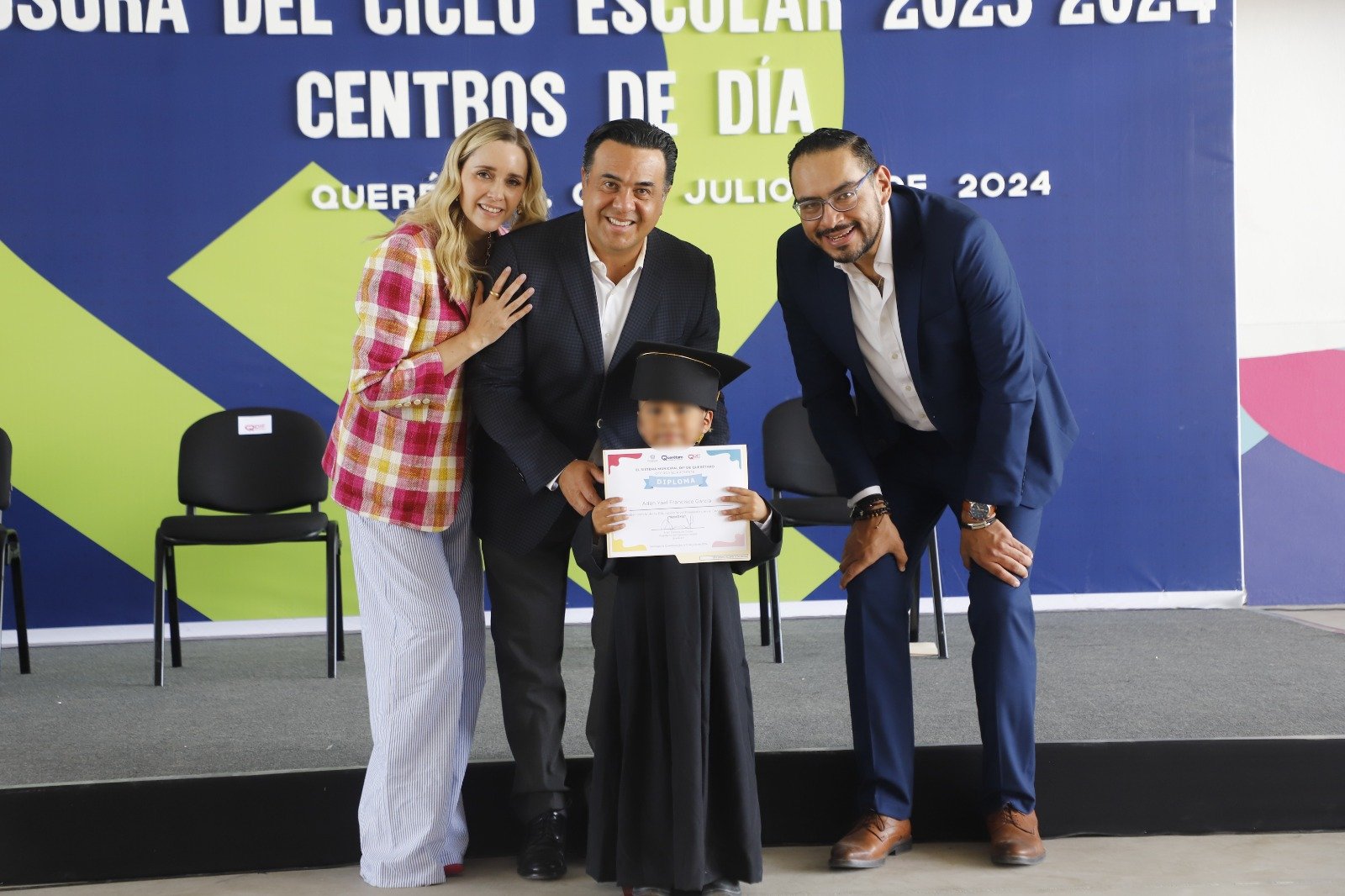 El Presidente Municipal de Querétaro, Luis Nava, acompañó a su esposa y Presidenta del Patronato del Sistema Municipal DIF, Arahí Domínguez, en la ceremonia de Clausura del Ciclo Escolar 2023-2024 de los Centros de Día de la Procuraduría de Protección de Niñas, Niños y Adolescentes del DIF Municipal, donde se graduaron 51 niñas, niños y adolescentes, que de no contar con estos espacios, seguirían en riesgo de trabajo en calle y expuestos a otros riesgos.