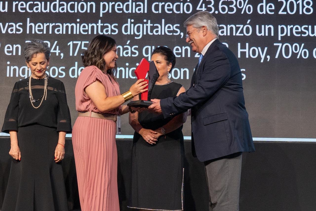 Durante el evento, Claudia Martínez Guevara recibió la estatuilla por Autonomía Financiera, destacando la labor de la secretaria de Finanzas Patricia Hernández Barrera y su equipo, al lograr estabilidad financiera y cero endeudamientos, en dos gobiernos consecutivos.