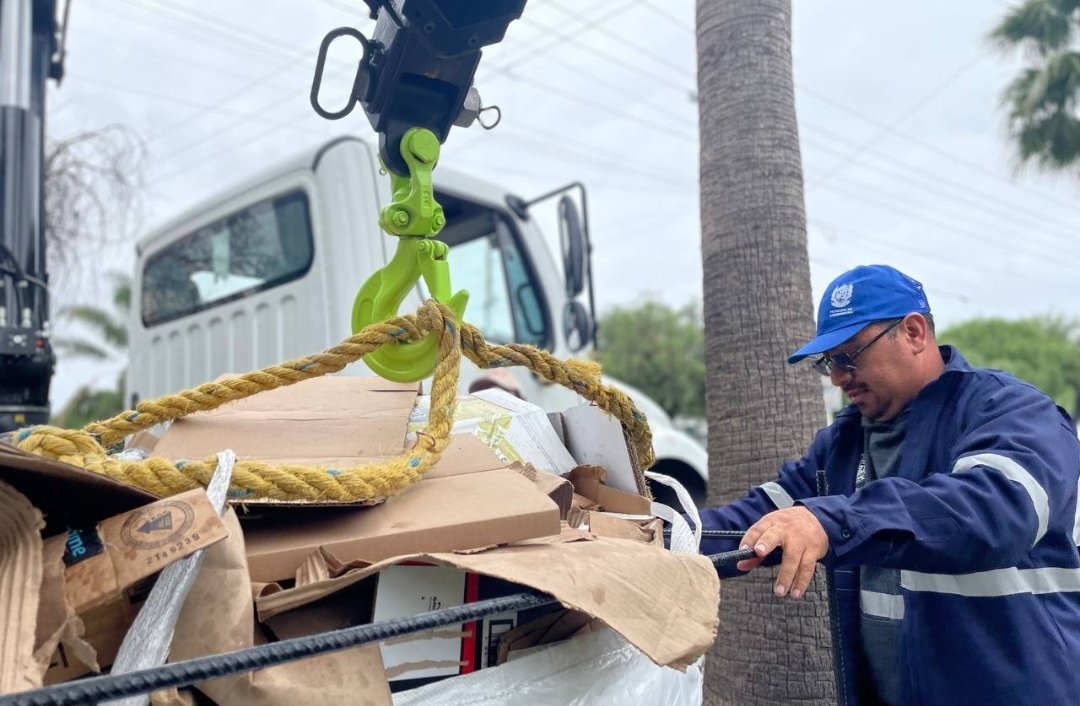 El funcionario indicó que se entregan tres barcinas por unidad habitacional, una para PET, otra para cartón y otra para aluminio y que una vez que las llenan pasará el nuevo camión recolector para llevarlo a un centro de acopio.