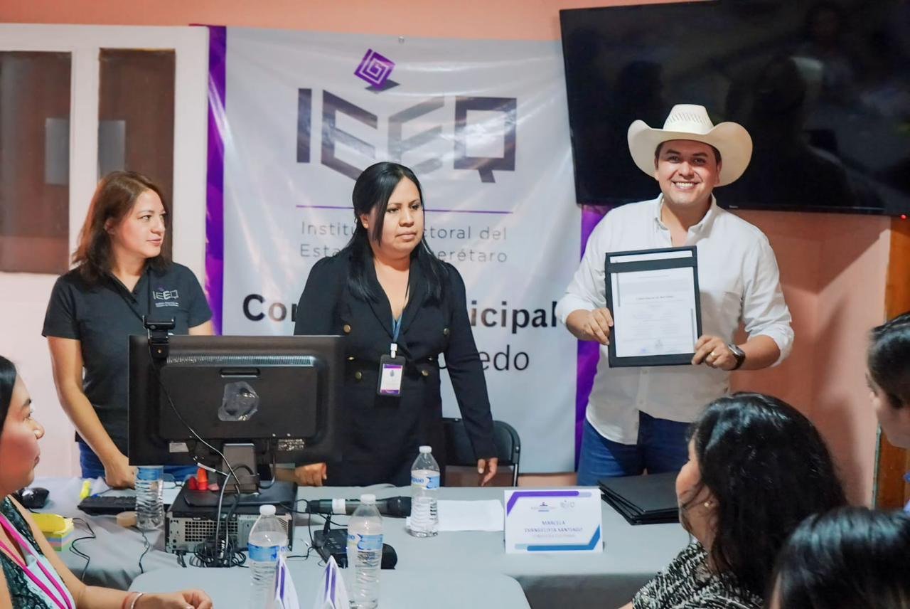 Tras el cómputo en el Consejo Municipal de Pedro Escobedo, Juan Alberto Nava Cruz de Morena recibió la constancia de…