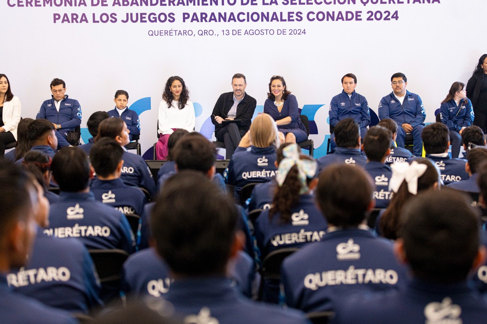 El gobernador, Mauricio Kuri González, encabezó la ceremonia de abanderamiento de los 130 atletas que representarán a Querétaro en los Juegos Paranacionales de la Comisión Nacional de Cultura Física y Deporte (CONADE) 2024, los cuales se llevarán a cabo en Oaxaca a partir del 18 de septiembre.