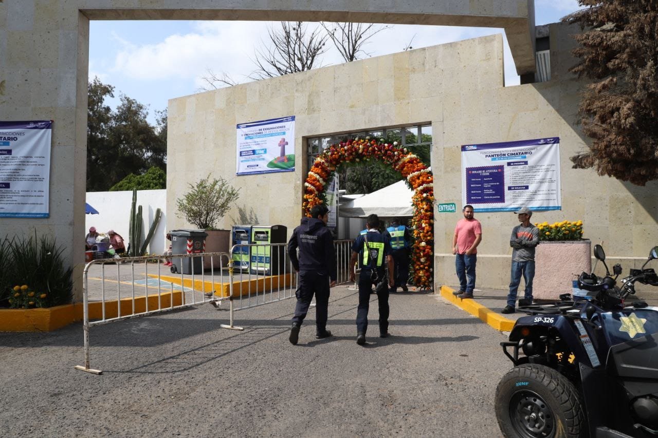 El Municipio de Querétaro inició el operativo de vigilancia y prevención en los ocho panteones municipales para proteger la seguridad de los asistentes que visitan estos espacios durante el Día de Muertos, con la participación de elementos de diversas corporaciones municipales, así lo informó Francisco Ramírez Santana, Director de la Coordinación Municipal de Protección Civil.