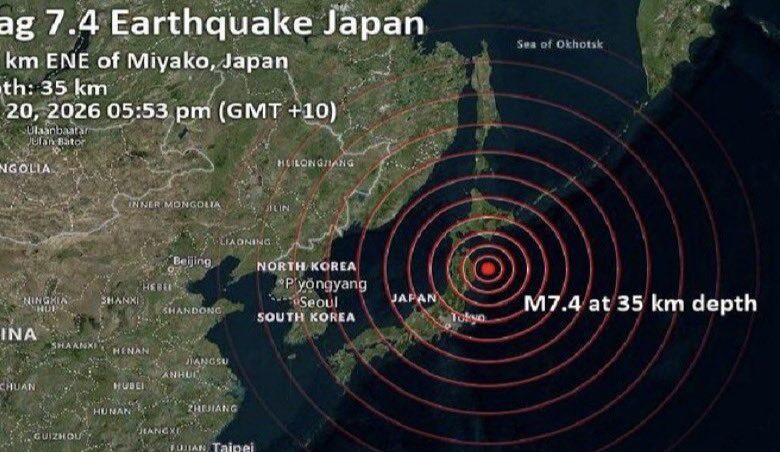 Un terremoto de magnitud preliminar 7.4 a 7.5 sacudió este lunes la costa noreste de Japón, con epicentro en el océano Pacífico frente a la región de Sanriku, de acuerdo con la Agencia Meteorológica de Japón (JMA)