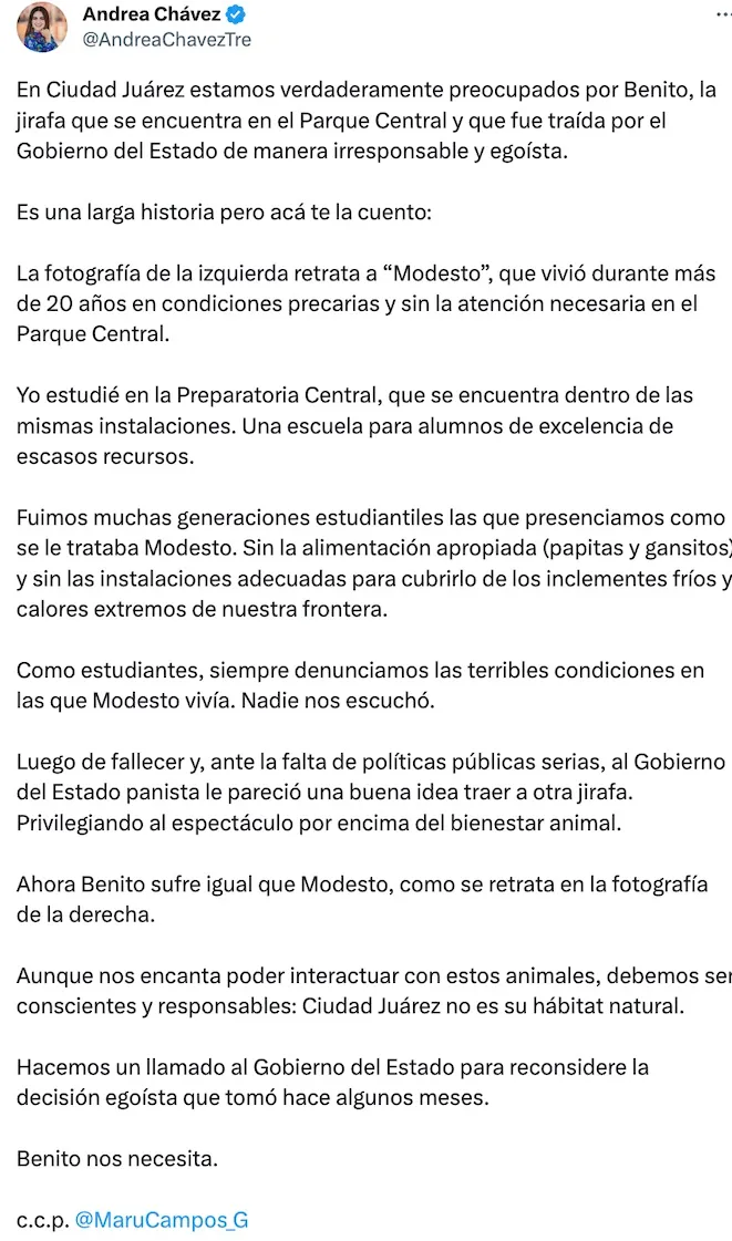En resumen, ¡salvemos a Benito, la estrella de Ciudad Juárez! 🌟🦒 #BenitoSeMereceUnSpa